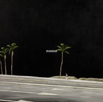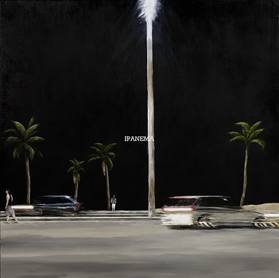Avec « Ipanema », il nous présente un triptyque de grands formats, avec des paysages urbains actuels, traités sur fond noir. Ce paysage urbain évolue : on voit les voitures passer, les 3 parties d’une route. Voici son texte qui est éclairant sur cette œuvre :