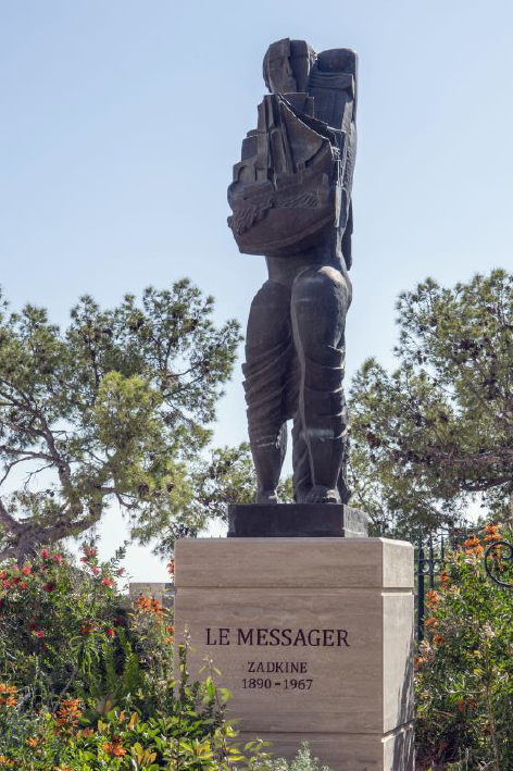 Le Messager de Zadkine, aussi appele ?e « Le Porteur de pre ?sents » ou « Le Navigateur » a e ?te ? re ?alise ? d’apre ?s un original en bois de 1937 pre ?sente ? lors de l’Exposition Internationale des Arts et Techniques de la me ?me anne ?e. La sculpture en bronze, de ?sormais pre ?sente sur le parvis du Muse ?e oce ?anographique de Monaco est la troisie ?me e ?preuve d’une se ?rie de huit, re ?alise ?e par la Fonderie Susse Fre ?res en 1992, d’apre ?s l’original. Le socle de la statue est en Pierre de la Turbie.