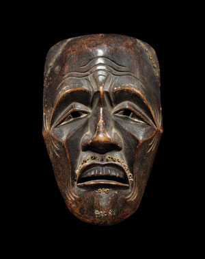 Réalisé en bois laqué, ce masque est daté du XVIe siècle et représente les traits d’un vieil homme, Kojyô, personnage joué dans le théâtre Nô. Ce type de masque pouvait également être utilisé durant des festivals populaires. Cette pièce s’ajoute au musée départemental des arts asiatiques à un fonds consacré au théâtre Nô. En effet, le musée conserve un ensemble d’estampes, d’objets et de textiles liés au théâtre traditionnel japonais.
