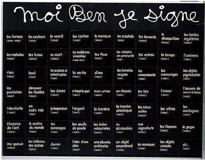 Parallèlement, Ben et Robert Erébo édite la revue « Ben Dieu » avec le chapitre : « Moi, Ben, je signe ». C’est une liste de déclarations d’appropriations. Venet, Alocco, Massa (dit Jean Mas) et bien d’autres se sentent pousser des ailes à son contact. Ben les parraine, les entoure et les encourage. Serge Oldenbourg (dit serge III) fauché lui « vend son âme » pour 20 F !
