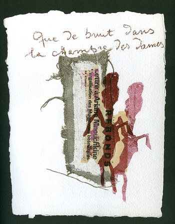 Laissez maintenant vos regards aller d’un livre à l’autre et des livres aux toiles... Vous y sentirez ces dialogues : le motif d’une toile repris et transformé sur la feuille d’un livre, personnages féminins, oiseau, points, traits et traces, sortes d’habitat ; le texte, dont on se demande s’il fait écho aux toiles, ou si c’est l’artiste qui a su nous faire vibrer ces échos en lui... Et pour chaque livre, une aventure... Nous les raconterons peut être toutes... Un jour… (Raphaël Monticelli)
