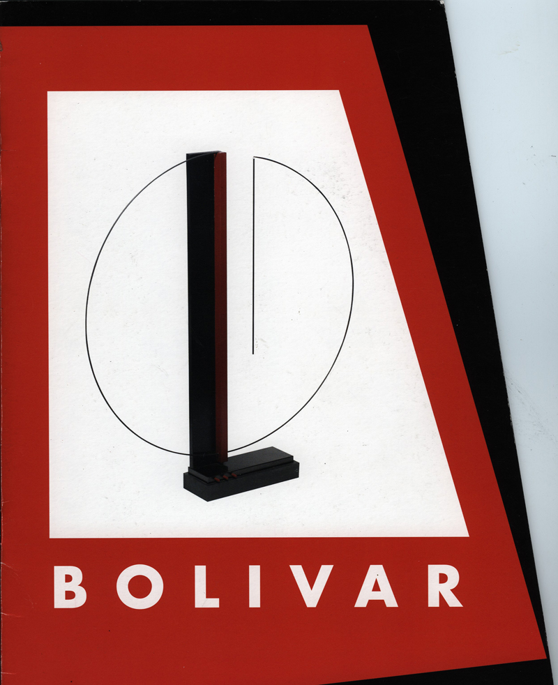 le secret de ces non dits qui, à travers le temps, recèlent le culte du sacré. Par ailleurs, l’œuvre de Bolivar se situe dans une modernité rationnelle, émanée d’une société industrielle et technologique. N’est il point, au sein du « Mouvement MADI » l’un de ses membres les plus actifs ? L’un de ces artistes qui ont su réaliser en art ce qu’il est convenu d’appeler l’expression de la liberté. Liberté de rompre avec la tradition classique de la peinture circonscrite à l’intérieur du carré ou du rectangle. Cette vision, orientée vers le futur, prenant pour fondement la modernité, incite à l’expansion de l’œuvre, à l’aménagement dans l’espace de structures monumentales. Peintures sur bois ou sur toile, reliefs et sculptures s’organisent selon des critères de rigueur avec, en plus, une approche empreinte de mémoire, donnant libre cours à l’invention. Sensibilité et vigueur, authenticité et personnalité se côtoient avec audace dans la mise en œuvre de nouveaux rapports de plans décalés et de couleurs quasi tectoniques. Ses investigations, toujours plus avant, tendent ardemment, dans un esprit de simplification, vers de nouvelles richesses de langage où lignes et couleurs, plans et organisation sont les facteurs essentiels d’une forme attachée au traitement de la spatialité. (Claude Dorval, Paris, janvier 1994).