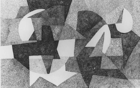 Face à ma recherche précédente : lignes droites et angles brisés, qui créent une tension, le cercle, qui engendre le calme - est un cas à part parmi les trois formes originaires - carré - triangle - cercle. Des lignes droites ne sauraient produire le cercle, dont la surface est opposée au triangle.