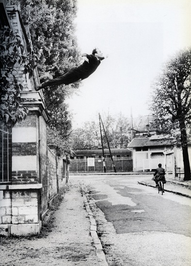 Dans le numéro unique du journal « Dimanche » (27 novembre 1960) d’Yves Klein - avec photo de celui-ci se jetant dans le vide - le « Projet de ballet sur aspect de fugue et choral » a été écrit par Yves Klein en collaboration avec Jean-Pierre Mirouze (sic) en 1959. Dans ce faux journal Yves explicite la nécessité d’avoir des corps nus de femme dans son atelier pour accompagner sa création. Très long texte, dont cette phrase : « Avec moi, elles comprenaient, elles faisaient quelque chose, elles agissaient ». Et de citer une chanson qui se termine par : « Viens avec moi dans le vide » (1957).