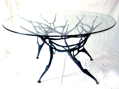 Un travail perpétuel de recherches d’où naissent des sculptures originales, des objets associant diverses matières et styles, des tables aux pieds ramifiés, etc.
