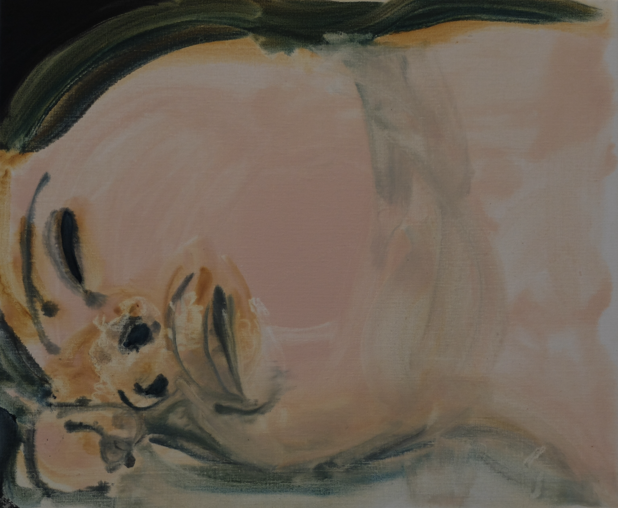 La peinture de Marlène Dumas est expressive, à grands coups de brosses, les contours imprécis. C’est la couleur qui dit l’essentiel. Grâce à ses tons plutôt froids, elle explore la sensualité, la sexualité : elle détourne des images pornographiques, nous les renvoie comme nettoyées de toute concupiscence.