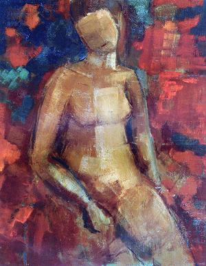 A Cagnes, Michel se jette dans la peinture, comme il l’explique à Alexandre de la Salle et moi au cours d’une interview qui sera reproduite dans le catalogue de son exposition « Variations Saturniennes » à la Galerie Alexandre de la Salle au printemps 1995 : « M’étant trouvé à Voiron comme professeur sans rien d’autre à faire que quelques heures de cours, je me suis mis à peindre sérieusement parce que lorsque j’étais enfant, mon père étant peintre, ma tante étant peintre, toute ma famille étant peintre, j’avais toujours dessiné et peint. Et je me suis rendu compte à ce moment-là que je ne savais rien faire et qu’il fallait que j’apprenne complètement mon métier. Et à l’UMAM à Nice en 1948 a eu lieu une exposition où j’ai pu voir les grands de l’époque, Picasso, Matisse, mais aussi Rouault, Gromaire et les autres, et ça m’a ouvert les yeux sur une peinture que je ne connaissais pas et qu’il fallait que j’approfondisse. Je suis allé à la Villa Thiole, et je me suis entendu avec Edouard Fer qui en était directeur, pour faire du nu, comme je l’entendais, non pas sous la direction d’un professeur. Pour appréhender le corps humain. J’ai toujours fait du nu par la suite. Jusqu’en 56 j’ai été figuratif, mais j’en eu assez de faire des sous-Vlaminck, des trucs comme ça, et un jour comme je faisais une nature morte de glaïeuls et que je n’y arrivais pas, j’ai décomposé la toile en deux parties, en trois, il y avait trois superpositions de glaïeuls, c’était donc déjà une démarche un peu cubiste... J’ai beaucoup étudié Braque, beaucoup regardé ses travaux. Mon père était un impressionniste, qui me disait : copie la nature. Le cubisme m’a aidé à ne plus la copier. Quand j’avais cet atelier avec des élèves, je leur disais : pour casser cette image de la nature, dessinez votre paysage, et puis au moment de peindre commencez par le ciel, et faites-le tout rouge. Si vous faites suivre le reste, vous aurez fait un grand pas dans la peinture ».