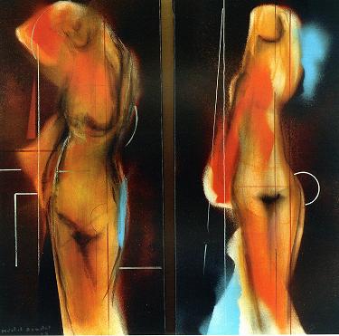 A cette époque, devant notre caméra Michel réalisa un Nu virtuose tout en nous gratifiant d’un véritable cours de dessin tel qu’il en évoquerait – entre autres - les caractéristiques dans son texte du catalogue de l’exposition « Vissi d’arte » au Château-Musée Grimaldi du Haut-de-Cagnes de l’automne 2009.