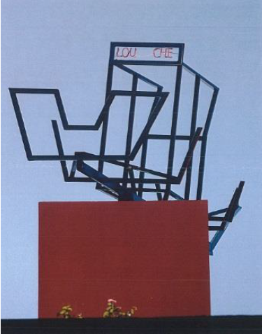 Réinstallation de l’oeuvre Lou Che donnée antérieurement par l’artiste à la Ville de Nice. Il a été passé commande à Noël Dolla d’un socle monumental, oeuvre à part entière, se présentant tel un phare portant la structure fantomatique de ce bateau.