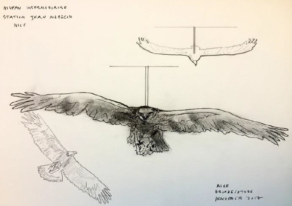 Stéphane Pencréac’h s’inscrit dans la grande tradition de la sculpture publique à travers un parcours de cinq figures, soit autant de symboles et d’allusions au patrimoine, à l’histoire et à la République. Cet ensemble en bronze, composé d’un aigle et de quatre personnages ailés dont une femme et trois enfants, constitue une véritable allégorie de la Liberté.