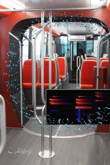 Michel Redolfi, compositeur et designer son, prolonge le travail réalisé sur la ligne 1 en 2007 à l’intérieur des rames. Sa volonté est d’accompagner harmoniquement les usagers au cours de leurs déplacements tout en mettant à l’honneur le patrimoine et l’environnement sonore de la Ville de Nice, avec des annonces musicales et vocales variables au fil de la journée et du parcours.