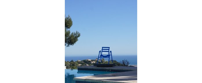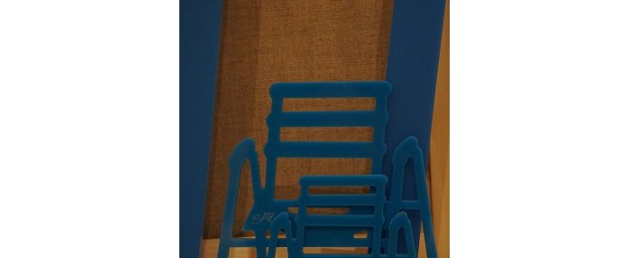 Un client m’a un jour demandé un projet sur le bonheur et les difficultés d’y accéder avec une connotation Niçoise. Tout de suite, les chaises bleues me sont venues à l’esprit. Aujourd’hui, je les décline sous forme de tableaux ou de bijoux. Elles sont une source d’inspiration intarissable. J’ai récemment fait breveter mes conceptions autour des chaises bleues.
