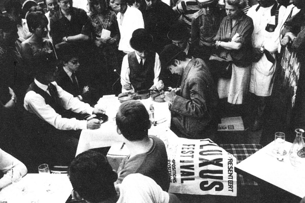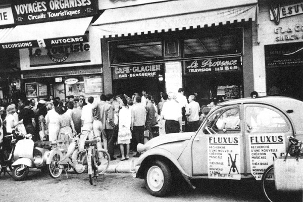 Le jeudi 13 octobre nous jouâmes un Concert Fluxus de Ben. Le vendredi 14 un happening de Dick Higgins. Le samedi et le dimanche étant fériés il n’y eut pas de représentation. Ben, pour des raisons personnelles, partit pour Nice le samedi 15. J’organisai le happening du lundi 17 avec l’aide de Knizak et d’un de ses amis, Jan Mach. J’étais allé à Prague, avec une certaine sympathie pour les pays socialistes et nous en avions discuté tout le long de la route avec Ben. Je pensais, que, quoique maladroitement, il s’y construisait une société nouvelle, qui un jour serait un progrès par rapport à la société actuelle. Puis, par de tous petits détails, en quelques jours, je me suis aperçu qu’au contraire, ce système avait fait régresser la Tchécoslovaquie matériellement aussi bien que moralement. Des détails, tels que les jours sans viande, ou la résignation du gérant d’un club important devant le nombre d’ampoules grillées, ou encore la petite fille du Président Masaryk me montrant avec émerveillement un appareil à imprimer sur rubans plastiques. Je m’apercevais donc que des millions de gens étaient escroqués par le mythe d’un socialisme constructeur. Prague, la Ville Dorée, était devenue Prague la ville aux échafaudages où il n’y a jamais personne et qui restent des années le long des façades des maisons. J’étais dans cet état d’esprit quand nous avons organisé une petite fête chez Knizak, après mon happening.