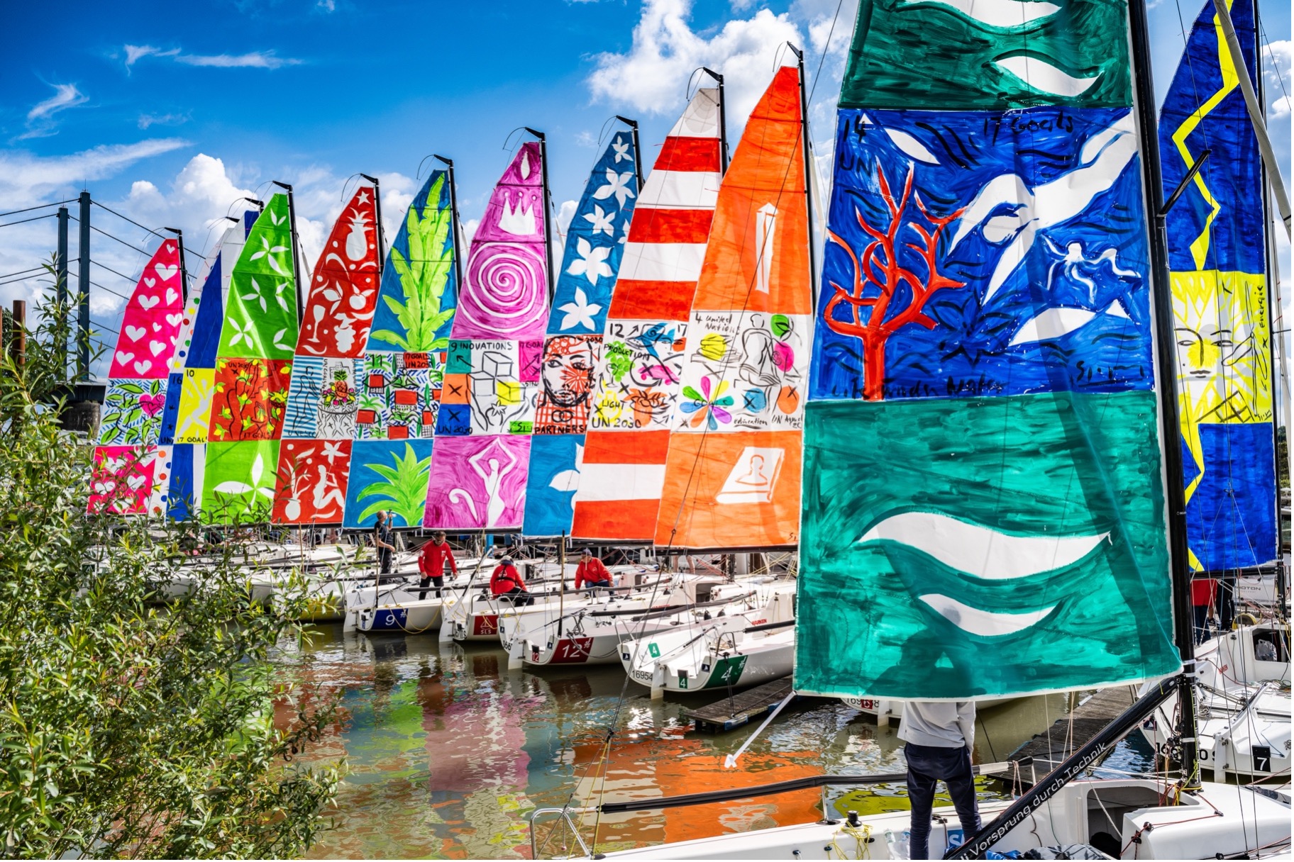 Peintre de L’UNESCO, il a hissé sur des voiles les 17 objectifs de développement durable des Nations Unies. Une démarche politique et écologique qui, de régates en régates, sillonnera la planète jusqu’en 2030.