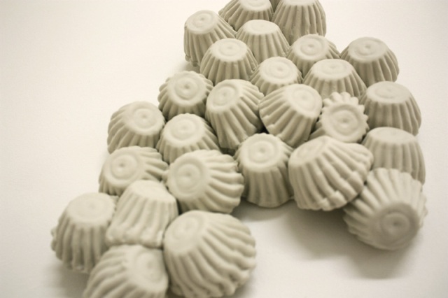 Les moullusques sont une série de sculptures en porcelaine blanche non émaillées réalisées à partir de petits moules à tartelette.