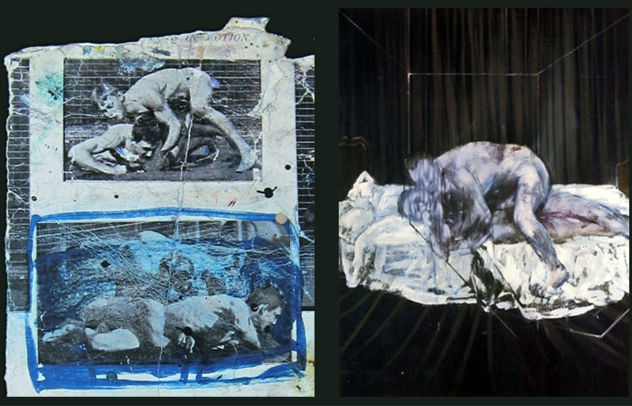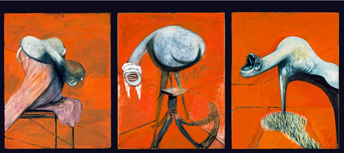 Bacon a peint peu de scènes ou de paysages, surtout des portraits de ses amants, de ses amis. Les visages sont en partie effacés, comme s’ils avait été peints puis recouverts de peinture noire.