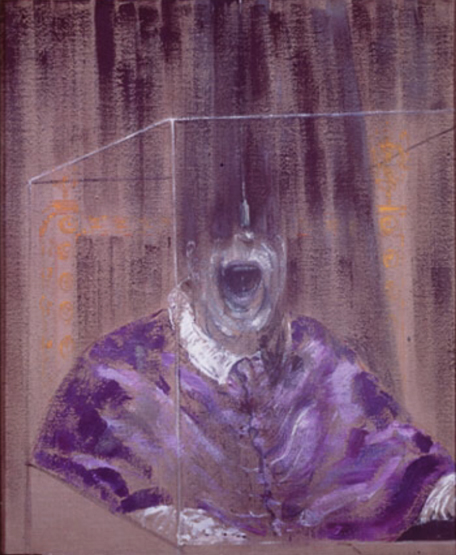 Des images récurrentes obsessionnelles comme celle du pape de Velasquez (pas si Innocent que ça), qui est l’objet de toutes ses violences : sur son fauteuil-chaise électrique, il fond, dégouline, se liquéfie, souffre, crie de toutes ses dents. Le visage du pape (du papa ?) est torturé, tordu, et les dents omniprésentes sont effrayantes.