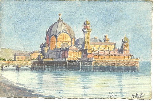 Visuel ci-dessus : Nice, Palais de la jetée-promenade . Carte postale aquarelle, début du XXe siècle