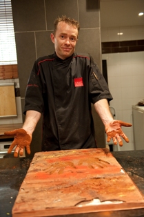 Et s’il se reconnaît quelques maîtres, Chibois, Ducasse ou Roger Verger qui l’éveilla au produit, les beaux-arts entrent aussi dans la démarche de celui qui présenta au Show’Colat de NICETOILE d’étonnants décors en chocolat inspirés de l’univers de Lewis Carroll : « J’ai pas mal de livres d’art chez moi. Quand je vais à Paris je passe par le Musée d’Orsay. Tous ces artistes que l’on a connus sur la Côte nous ont été d’une grande inspiration. Sans Arman et ses violons découpés je n’aurais pas fait l’an dernier à Pâques un œuf éclaté », commente celui qui a ouvert une seconde boutique à Nice et rêve de s’installer dans son berceau à Monaco.