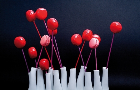 Et si Christophe travaille tout l’univers du sucre, il s’est fait connaître en revisitant le grignotage. Le Mac amour est un macaron en version snacking inspiré de la Pomme d’amour et préparé à base de produits nobles. Un nouveau délice pour petits et grands que ce macaron à la pomme verte planté sur un bâton et trempé dans du sucre rouge, dont le croustillant du caramel contraste avec le fondant du fruit défendu. Sur cette lancée, il s’est amusé à revisiter les chocolats en version sucette « une boule croquante fourrée avec trois parfums, passion coco, caramel fondant, ganache au thé ».