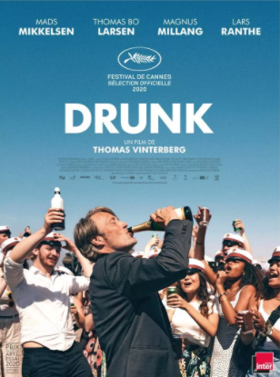C’est avec le label « Festival de Cannes - Sélection officielle 2020 » que sort « Drunk », le nouveau film de Thomas Vinterberg. Le cinéaste danois a été révélé en 1998 avec « Festen », film étendard du style Dogma qu’il avait lancé avec Lars Von Trier : caméra à l’épaule, uniquement des éclairages naturels et des accompagnements musicaux dans l’action, mais non ajoutés. Maintenant - vingt-deux ans plus tard – s’en est fini avec le Dogme, mais Vinterberg a gardé son audace en imaginant quatre copains, engourdis dans leur vie de professeurs d’un même lycée, qui se retrouvent pour fêter les 40 ans de l’un d’eux.
