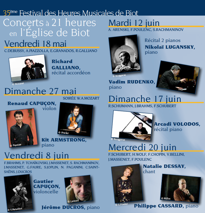 Les artistes invités aiment jouer dans ce lieu à la qualité d’acoustique exceptionnelle et retrouver le village de Biot qui conserve une certaine authenticité.