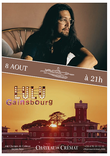Après un lancement sur les chapeaux de roues avec la soirée The Voice et l’événement en hommage au groupe mythique Pink Floyd, le Château de Crémat invite une nouvelle voix à sa programmation estivale ! Mardi 8 août 2023, Lulu Gainsbourg, artiste, compositeur, musicien et interprète, fera escale sur la Côte d’Azur le temps d’une soirée et offrira aux azuréen un showcase
