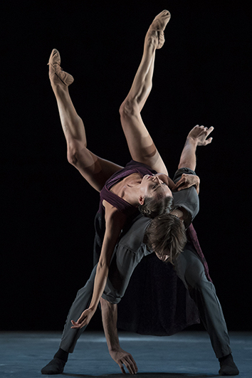 D’abord une danse par un duo sur une musique langoureuse qui va s’accélérer en rythmes vifs. Ce duo est rejoint par un deuxième duo et, peu à peu, d’autres duos arrivent avec des mouvements très articulés dans des ensembles rapides et musclés avec affrontements de corps dans des jeux d’une géométrie simple et forte. Les corps n’ont aucun répit avec des gestes en ruptures et des chutes répétées de duos à l’énergie fougueuse portée par une dizaine d’interprètes.