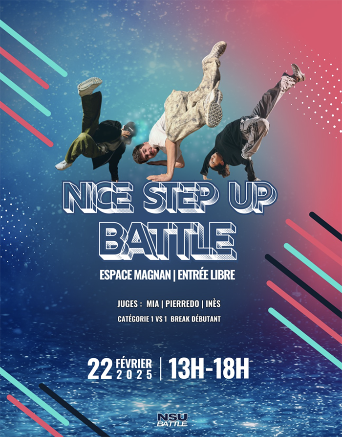 “Nice Step Up” sera également l’occasion de célébrer les talents de la culture hip hop niçoise. Des lots de la marque Nats Clothing, artisanat local fait main à Nice, seront à gagner. Un concert avec Guim et Mad Kid, deux rappeurs niçois prometteurs est également prévu. L’événement sera animé par Unics, pionnier de la culture hip hop à Nice.