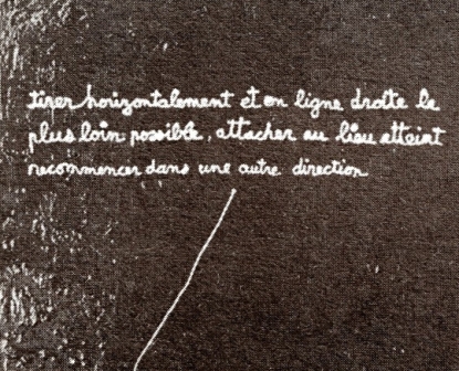 Un visage de Gilli, sous-titré « Gilli, Ecole de Nice », une une œuvre de Farhi , sous-titré « Farhi, Ecole de Nice » et un texte de Ben (tirer horizontalement et en ligne droite le plus loin possible, attacher au lieu atteint, recommencer dans une autre direction) illustraient le propos.