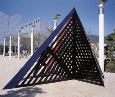 Et beaucoup plus tard, de sa sculpture réalisée en Corée du Sud pour le Symposium de Pusan, elle dira : « Le personnage figuratif intégré au pied de ma sculpture représente évidemment l’homme. Elle s’intitule « Entrer dans l’an 2000 », et, bien sûr, cet homme tente avec l’énergie du désespoir et une force décuplée de s’introduire dans la transparence des ouvertures des cloisons évidées.