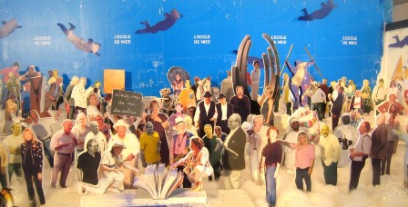 La chose aura donc lieu le samedi 4 décembre 2010 à 10h30 au Musée Rétif, à coups de déclarations des artistes sur le thème, et d’une action flambante de Jean Mas sur sa « Crèche de l’Ecole de Nice » (2004), dans laquelle il a installé un certain nombre de personnages du « monde de l’Ecole de Nice ».