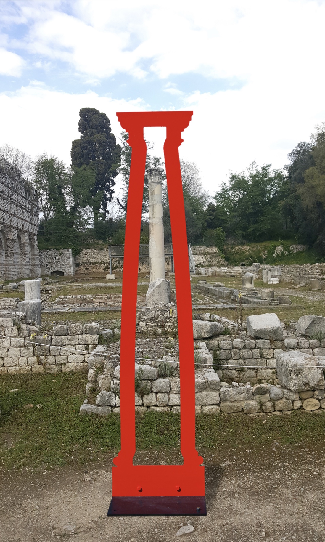 Passionné et inspiré par l’archéologie, Sacha Sosno rêvait de faire une exposition au milieu du site, comme un clin d’œil d’artiste à travers le temps.