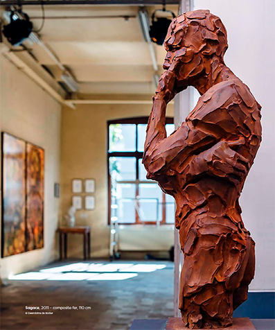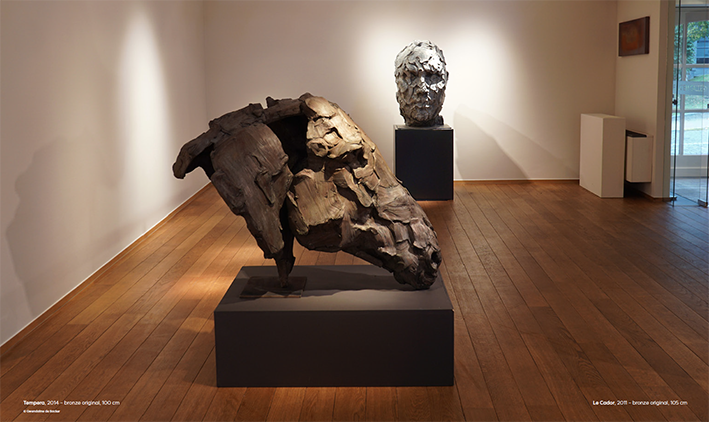 Une technique qui apporte une force particulière et rend son travail singulier. On sent l’instant de la création dans chaque empreinte. Des touches rapides qui donnent littéralement vie à ses oeuvres de bronze et de fer.