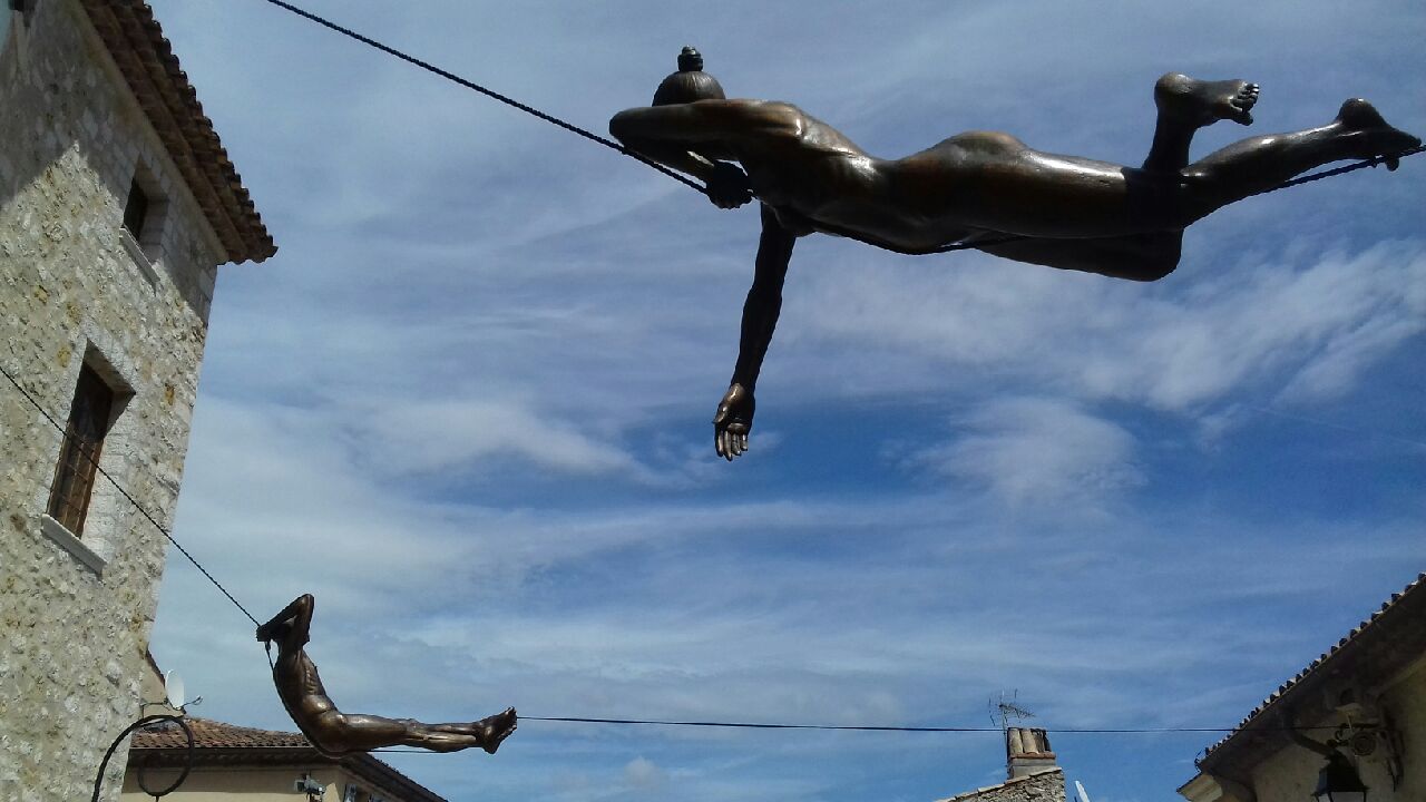 De très nombreuses autres œuvres ponctuent le parcours du château admirablement restauré où l’on est accueilli à l’entrée (on passe dessous) par deux superbes acrobates en bronzes à taille humaine (allongés sur filins) de Lavarenne.