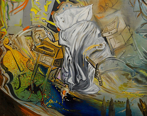 S’il est une vertu à laquelle nous pouvons être reconnaissants à Montse Aguer Teixidor, commissaire de cette exposition et directrice des Musées Dalí et du Centre d’Etude Dalinien à Figueras, c’est de nous faire découvrir des œuvres moins connues de l’artiste. La toile intitulée Lit et deux tables de nuit attaquant férocement un violoncelle, peinte après la mort de Gala, est une "contorsion topologique" ahurissante de violence et de drôlerie. Elle fait partie d’une bonne dizaine d’œuvres appartenant à La série des catastrophes lorsque Dali entre plus en phase avec la réalité de l’existence, dans son aspect expressionniste. Serait-il enfin devenu raisonnable sur ses vieux jours ?