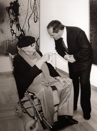 Hans Hartung n’en demeure pas moins un personnage bouleversant, peintre génial, héros résistant de la guerre, et Jean-Pierre Mirouze a encore eu l’heureuse idée de le filmer pour la série « Visions » de Télé Hachette. Il faut voir ce film en entier, Hans Hartung se colletant à la toile, la griffant, la chargeant d’éclairs. Au tout début, il tient un appareil de photographie. Et l’exposition du CIAC en 2004 mettait justement l’accent sur les regards des photographes, Frédéric Altmann, Ralph Gatti, François Goalec, André Villers, Alkis Voliotis (son assistant dans le film), qui l’avaient photographié, et j’avais moi-même, dans le catalogue, mentionné son expérience des éclairs, comment enfant il les avait conjurés, comment ce dépassement était peut-être la genèse de son œuvre. A l’époque je ne connaissais pas le film de Jean-Pierre Mirouze, je ne connaissais que l’Autoportrait de Hans Hartung. Mais c’est un bonheur de le voir démontrer, dans le film, son pari de la rapidité, et, comme dit Jean-Pierre qui l’interviewe, dévoiler un à un ces « signes de l’Homme dialoguant avec ceux de l’Univers ».