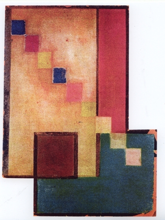 Shelley Goodman (qui n’est autre que le couple Shelley et Volf Roitman), dans leur merveilleuse biographie d’Arden Quin intitulée « When art jumped out of its cage », publiée par le « Madi Museum and Gallery, Dallas, Texas » font l’hypothèse que le jeune Carmelo Heriberto Alves Oyarzun (pas encore « Arden Quin », pseudonyme qu’il prendra plus tard), fou de jalousie à l’idée que sa mère, veuve de son père assassiné avant sa naissance, puisse se remarier, et donc mettant en pièces la photo d’un homme susceptible de devenir son beau-père, invente par ce geste, cet « écornement », une sortie du format orthogonal. L’interprétation est ce qu’elle est, mais la fureur est véridique, Carmelo l’a racontée devant ma caméra en 1988 à la Galerie de la Salle, et elle est présente dans l’un des deux clips qui accompagnent ce texte.