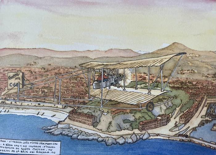 Grâce à sa technique de dessins aquarellés entre bande dessinée et paysages poétiques à la manière de Trachel, il nous restitue la vision d’une Nice rêvée à la vie sereine.