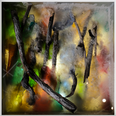 Depuis peu, l’artiste crée de nouvelles cristallisations à partir de sels gemmes de différentes régions du monde. Provenant de mers souvent disparues, ils contiennent « les mémoires d’un temps lointain, les archives des soubresauts de la Terre et de l’infinitude du temps » (Souheil).