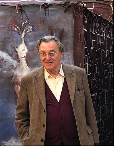 Il monte un spectacle au Palace, la boîte branchée à la mode de cette époque. Il peint des décors pour le palais de l’Élysée, le plafond du théâtre de Namur, le rideau de scène du théâtre du Châtelet, réalise des sculptures pour la cathédrale d’Évry bâtie dans les années 1990, une tapisserie géante pour la ville d’Aubusson, une toile et fer forgé pour la bibliothèque François-Mitterrand...