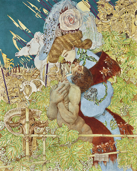 La femme est toujours dangereuse, vénéneuse, porteuse d’une jouissance suprême tout autant que de mort. Les rapaces sont prêts à dévorer tout cadavre. La fleur témoigne de la brièveté de l’existence. L’atmosphère est étrange, étouffante, ouverte sur un imaginaire sans limites et sur des mystères à l’infini. Les mythes servent de prétextes à des chimères maléfiques.