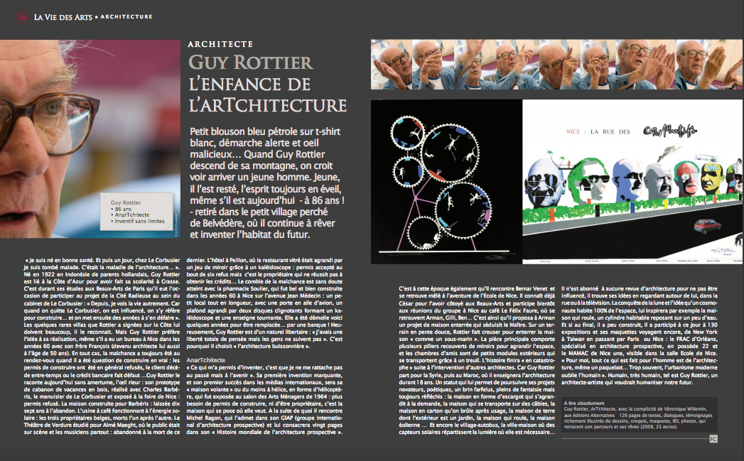 Disparu il y a quelques années à peine, après un demi-siècle de vie à Nice et dans sa région, Guy Rottier demeure une figure unique de « l’arTchitecture » et de « l’urbaNiceme » — deux termes qu’il inventa.