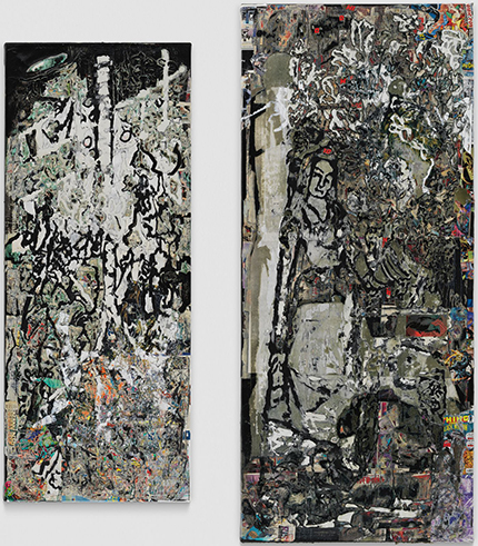 Mark Bradford reconstruit ce paysage en accumulant des couches de papier et de mastic qu’il façonne à l’aide de techniques caractéristiques de son oeuvre telles le ponçage, la déchirure et l’oxydation.