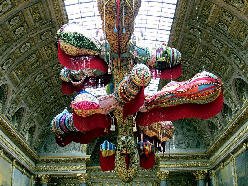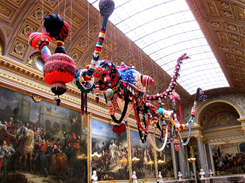 L’exposition de Joana Vasconcelos aurait même déclenchée des réactions positives parmi le public, que dis-je le grand public venu des quatre coins du monde. « Le château de Versailles est l’endroit rêvé pour rendre hommage à l’audace esthétique de cette époque et assurer une continuité avec l’histoire », souligne t-elle. Ce qui n’a en rien convaincu les associations de soutien au château. L’art contemporain "officiel" (dans officiel, j’entends l’art soutenu et entretenu grassement par l’Etat et nos "chères" institutions culturelles) est à leurs yeux sacrilège dans un tel lieu de mémoire.