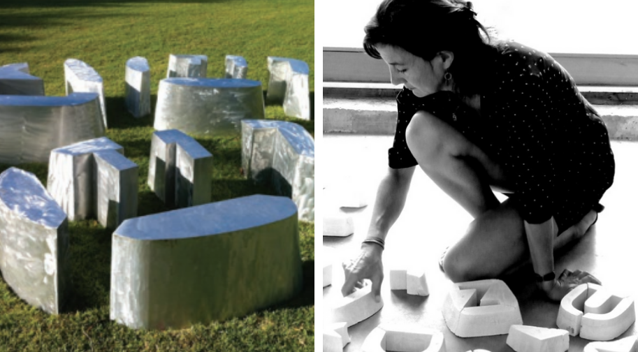Agnès Thurnauer a récemment développé cette question du langage pictural vers la troisième dimension, en exposant des moules de lettres à différentes échelles, permettant au regard comme au corps de prendre possession de cette potentialité. Matrice (joie)-2018 s’offre aux visiteurs qui pourront y déambuler comme y prendre place, devenant eux-mêmes sculptures sur le socle du mot.