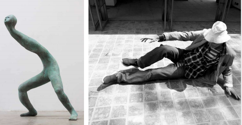 constante sur l’inscription du corps humain dans l’espace. Prenant pour sujet son propre corps, il confronte la perception intime et son inscription dans l’espace. En décrivant la posture du corps comme « la langue d’avant le langage », l’artiste invite le spectateur à projeter sur l’œuvre une infinie variété d’émotions. Le principal défi consiste à identifier le corps comme un lieu de pensées ou de sensations, plutôt qu’un objet d’idéalisation ou de représentation.