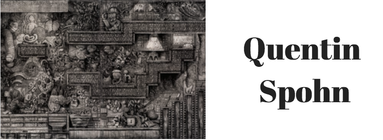 Le travail de Quentin Spohn s’articule autour du dessin à la pierre noire ou au graphite, à partir duquel il conçoit des paysages ou des portraits de grand