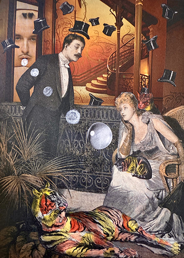 Lou Dubois qui pratique le collage depuis toujours, colle des images avec raffinement, passion, méticulosité