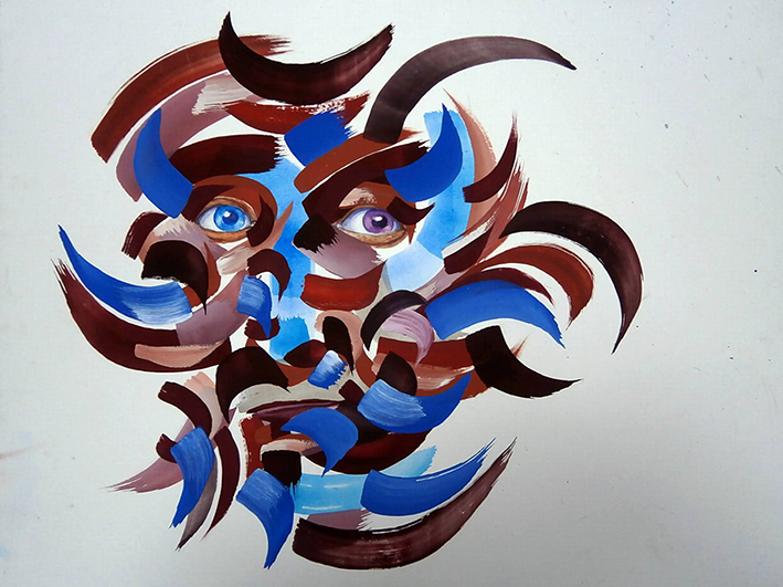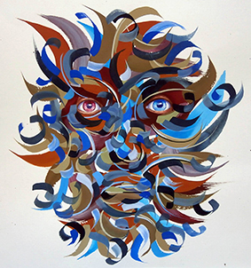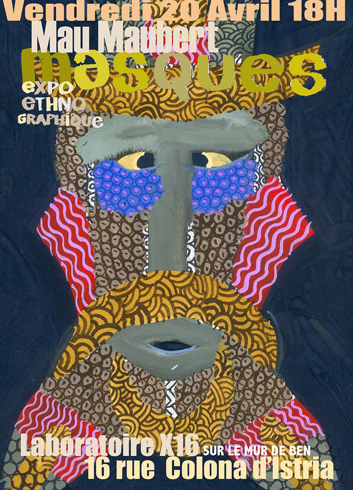 Grâce à ses jeux de lignes, de couleurs, de textures, Maubert revisite cet imaginaire universel, tout en visant à un au-delà des masques, quelquefois résumés à des rideaux de patterns colorées où apparaissent les yeux de couleurs différentes.